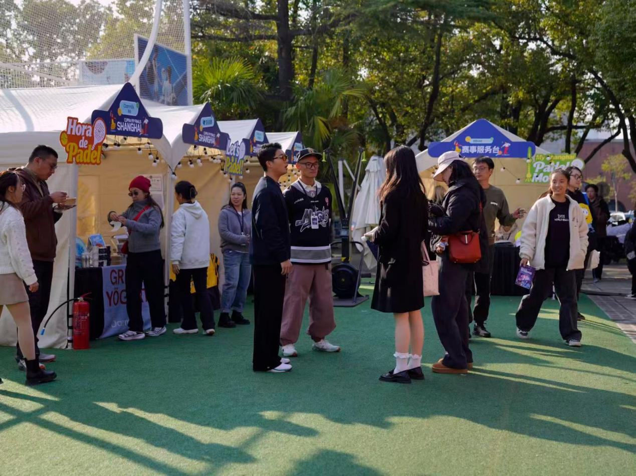 更为艰巨的是,从正式获得承办权到赛事开幕,留给这支团队的有效筹备时间仅有四周左右。在极端紧迫的周期内,他们需要完成包括国际协调、场馆改造、商务开发、外宾接待在内的全套复杂工作。团队核心成员凭借过往操盘大型发布会、潮流运动嘉年华等活动的丰富经验,将压力转化为高效执行力,昼夜不息地进行多线并行的攻坚。尤为可贵的是,团队中许多成员与志愿者本身就是板式网球的忠实爱好者。正是这份源于内心的热爱,支撑他们以极大的投入度,将首届赛事视为一项必须完成的使命。他们不仅出色完成了竞赛组织、场馆管理、运动员服务等核心任务,更主动扮演了“资源连接器”与“文化传播者”的角色,积极链接KIC创智天地、YEAHH PARK@江湾体育场、西班牙在华企业等多元合作伙伴,共同策划了融合观赛、体验与消费的“西班牙板式网球文化周”,真正将赛事打造为一个辐射广泛的复合型城市节日。